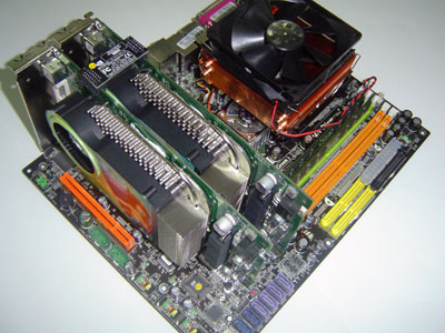 DDR-II@304MHz 4-3-3-12, 2 x Inno3D Geforce FX6800Ultra 256MB PCI-E.