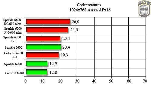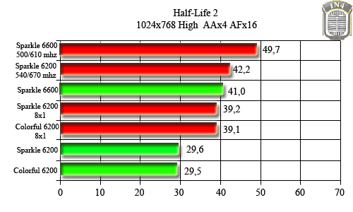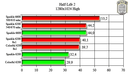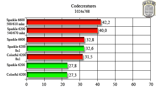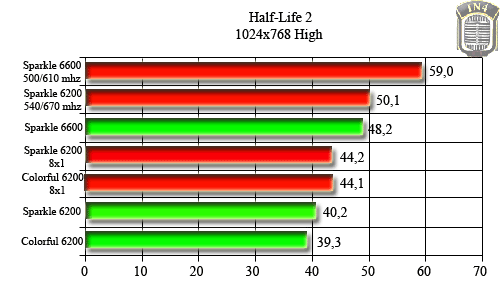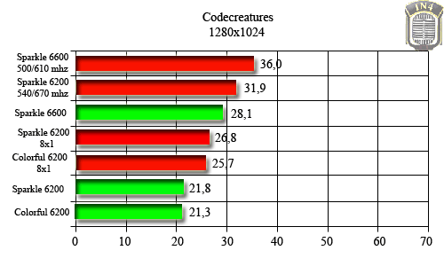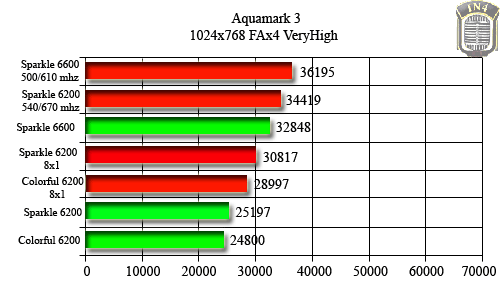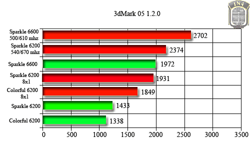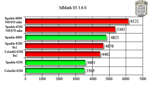 na prowadzeniu podkręcony GF6600, zaraz za nim 6200 po