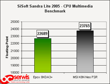 rozczarowanie. Podczas gdy Epox 8KDA3+ jest jak skała, MSI K8N Neo-FSR ma w