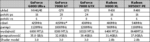 Radeona X850XT PE, a GeForce'a 7800GTX.