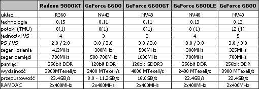 GeForce 6800. Posiada 12 potoków renderujących i 5