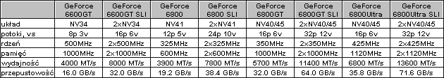 poczynając od GeForce’a 6600GT, a na modelu 6800 Ultra kończąc. Będzie też SLI