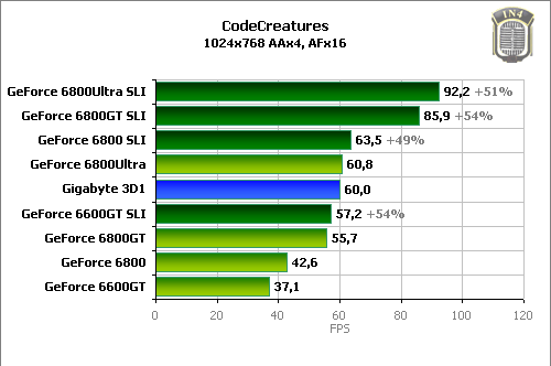 SLI w postaci dwóch kart 6600GT wypada gdzieś pomiędzy wydajnością 6800 i